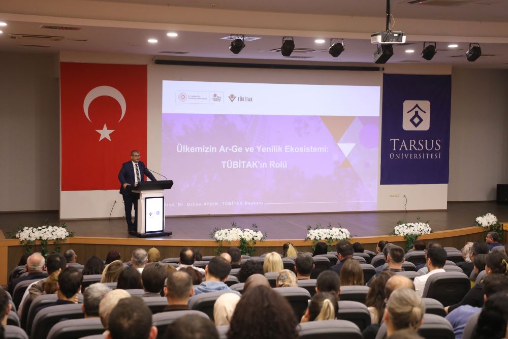 Program kapsamında konuşan TÜBİTAK Başkanı Prof. Dr. Orhan Aydın ise Tarsus Üniversitesinin yürüttüğü çalışmalara ve üniversitenin gelişim sürecine değinerek, “Ülkemizin önemli yükseköğretim kurumları arasında yer alan Tarsus Üniversitesinde değerli çalışma arkadaşlarımızla yeniden bir arada olmaktan büyük kıvanç duyuyorum” ifadelerini kullandı.