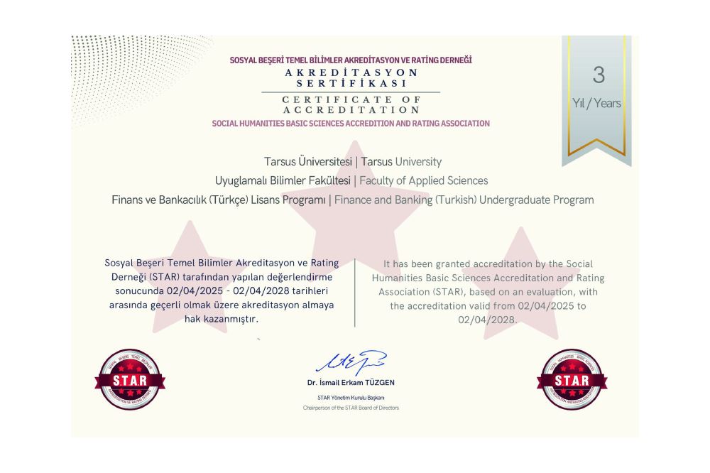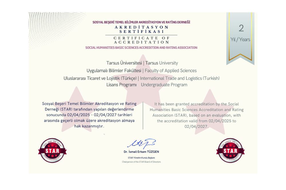 Two undergraduate programmes within Tarsus University have been accredited following an evaluation process conducted by the Social, Human and Basic Sciences Accreditation and Rating Association (STAR).