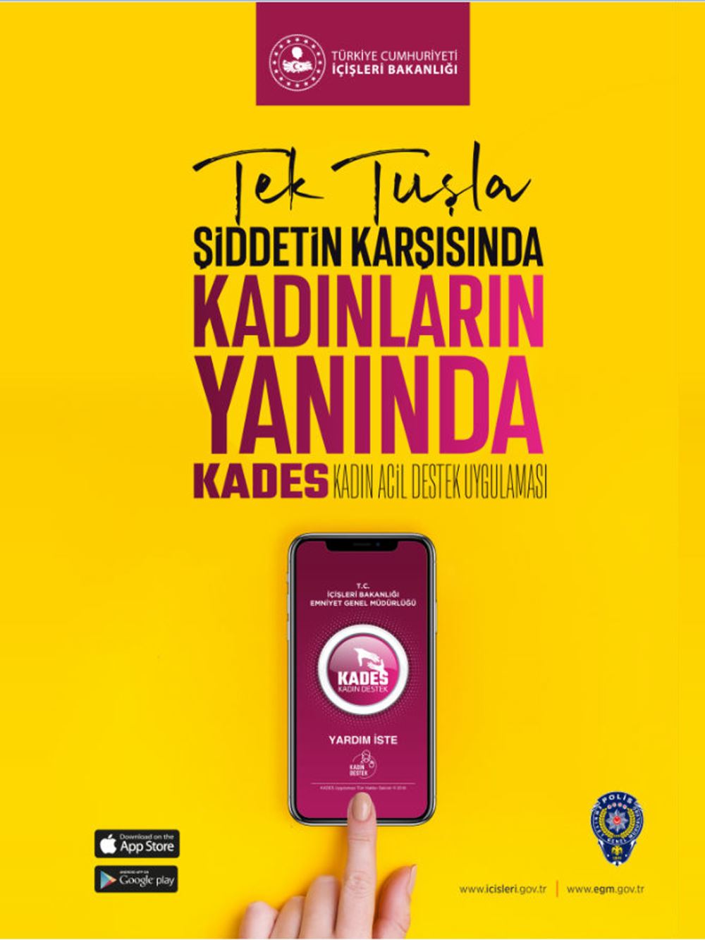 Türkiye Cumhuriyeti İçişleri Bakanlığı koordinesinde Emniyet Genel Müdürlüğü tarafından geliştirilen KADES (Kadın Acil Destek Uygulaması), şiddet gören veya şiddet görme riski altında olan kadınların ve çocukların acil durumlarda yardım alabilmesini sağlayan ücretsiz ve güvenli bir mobil uygulamadır.