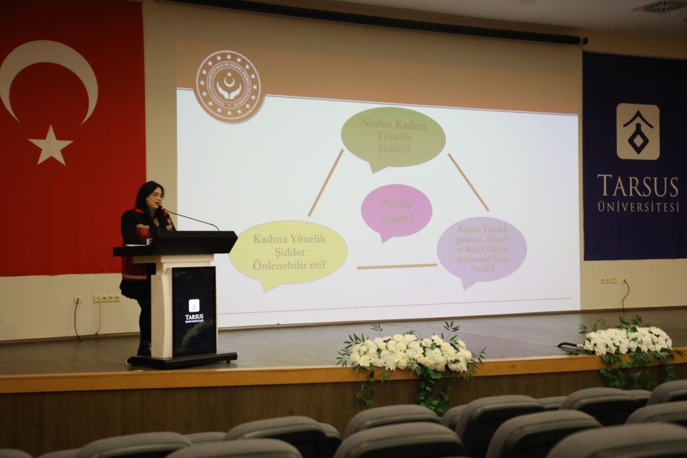 Tarsus University hosted an important event aimed at raising social awareness. The programme, entitled ‘Training on Combating Violence Against Women’, was held on Wednesday, 17 December 2025, at 2 p.m. in the Şehit İstihkâm Üsteğmen Ozan Olgu Köreke Conference Hall.