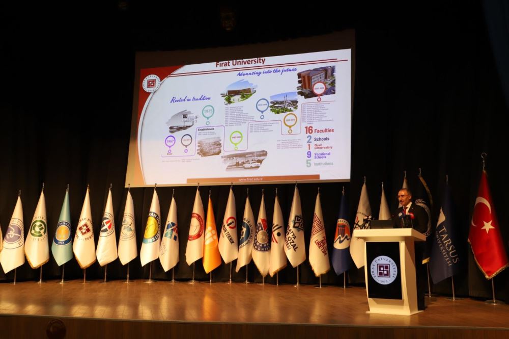At the meeting; Tarsus University Vice Rector Prof. Dr. Tuğba Yolcu, Elazığ Governor Numan Hatipoğlu, Gaziantep Metropolitan Municipality Mayor Fatma Şahin, Elazığ Mayor Şahin Şerifoğulları, Fırat University Rector Prof. Dr. Fahrettin Göktaş, YÖK Executive Board Member Prof. Dr. Mahmut Ak, Ministry of Foreign Affairs Directorate for EU Affairs General Manager of Financial Cooperation and Project Implementation Bülent Özcan, academicians and representative delegations from 27 universities attended the meeting.
