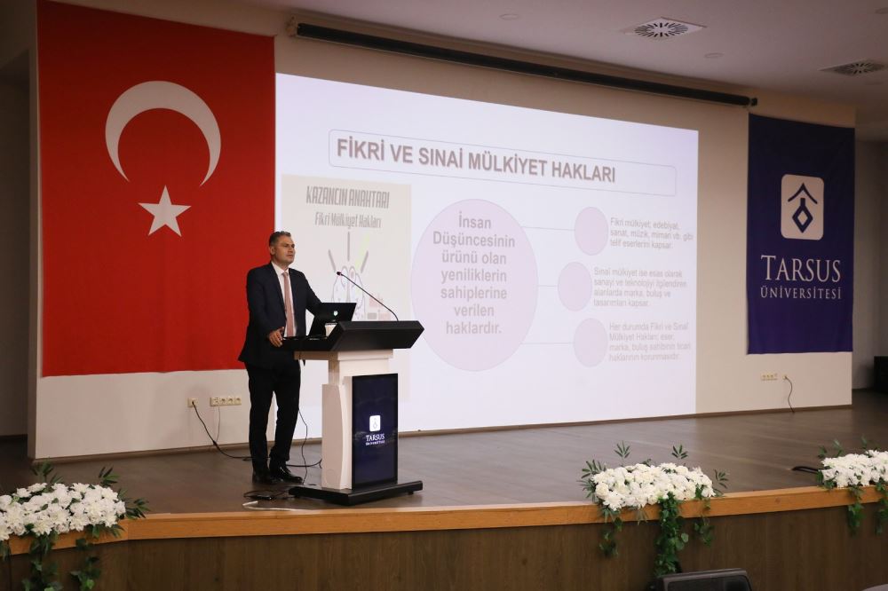 Tarsus University Project Office organised a seminar on Intellectual and Industrial Property Rights, Patents and Utility Models at the Şehit İstihkâm Üsteğmen Ozan Olgu Köreke Conference Hall. The seminar covered patent and invention application processes, presented by experts.