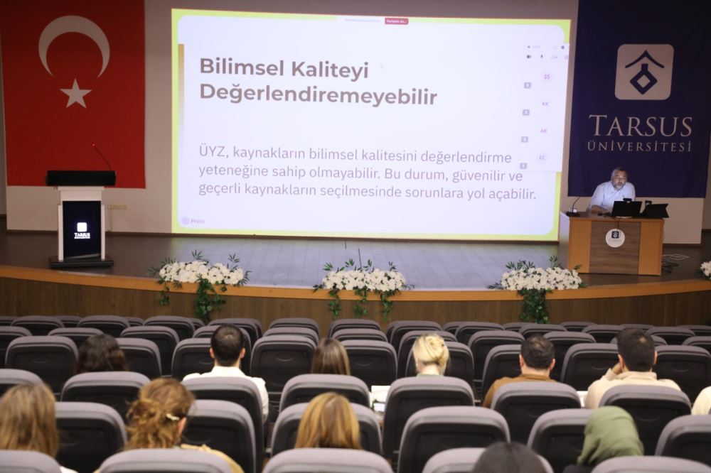 Tarsus University Graduate School of Education organised a seminar entitled ‘The Use of Artificial Intelligence and Ethical Principles in Project and Scientific Research Processes’ at the Şehit İstihkâm Üsteğmen Ozan Olgu Köreke Conference Hall.